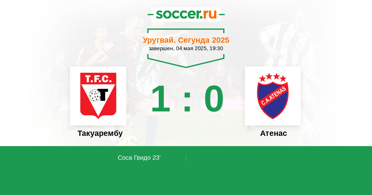 Протокол матча Такуарембу против Атенас