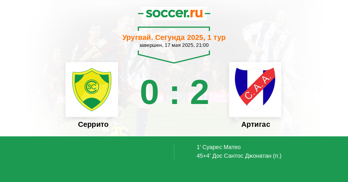 Протокол матча Серрито против Артигас