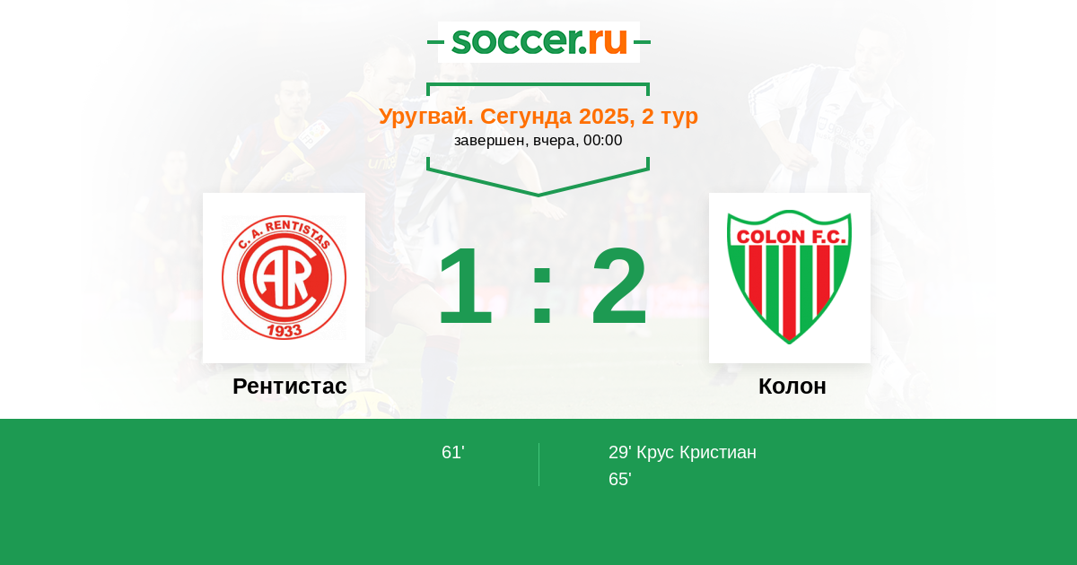 Протокол матча Рентистас против Колон