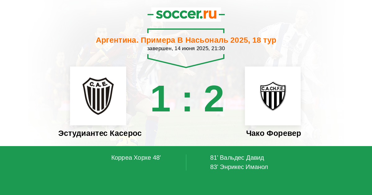 Протокол матча Эстудиантес Касерос против Чако Форевер