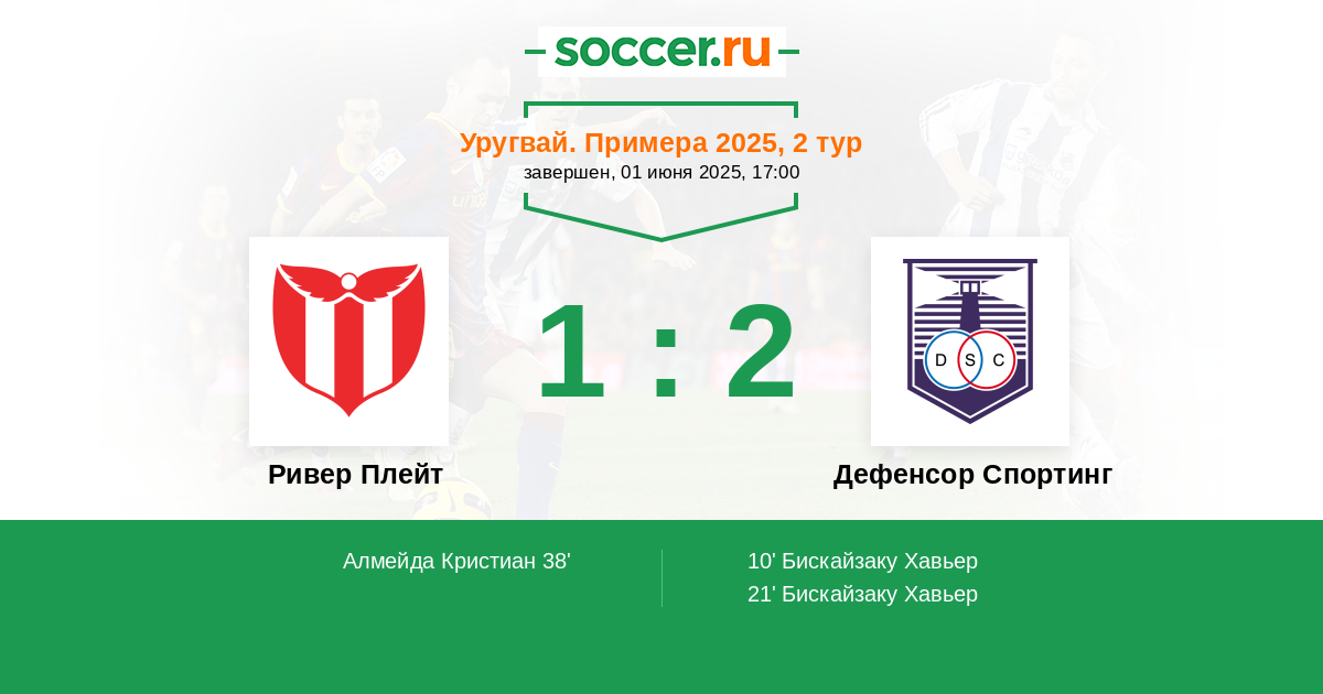 Протокол матча Ривер Плейт против Дефенсор Спортинг