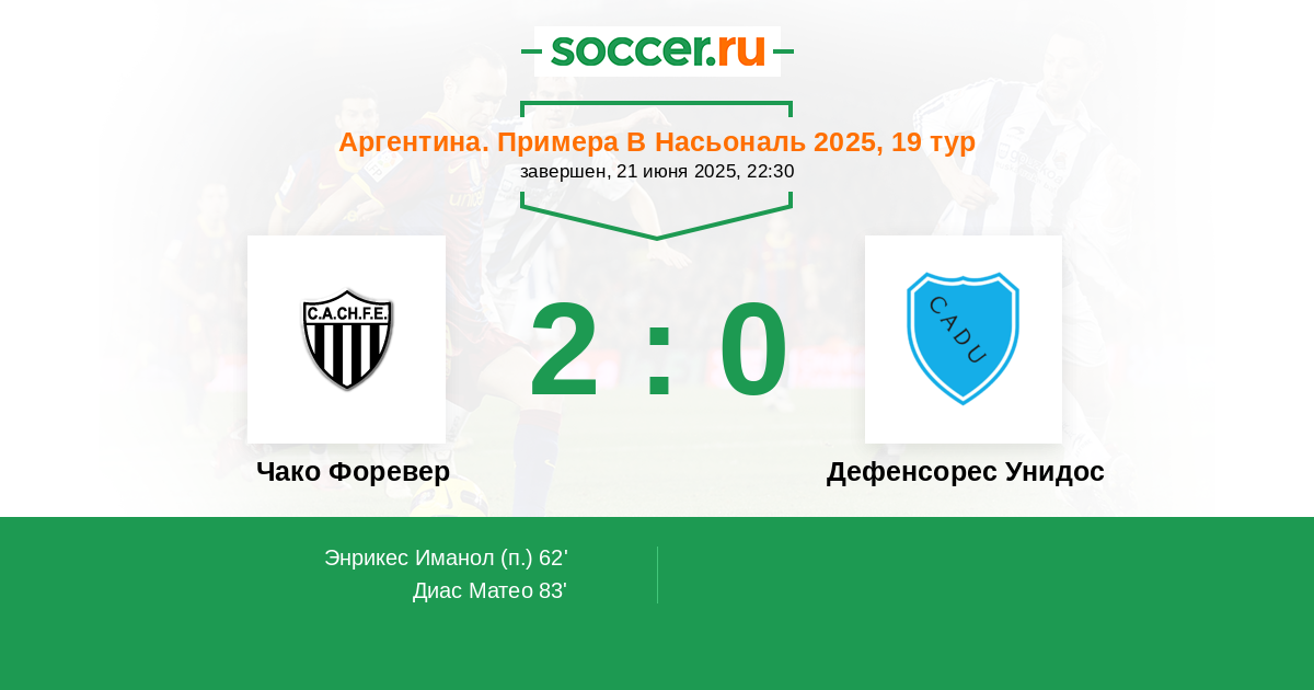 Протокол матча Чако Форевер против Дефенсорес Унидос