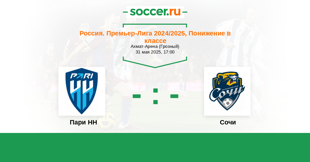 Вроде бы все на стороне Нижнего Новгорода и победа на выезде и игра дома, но... Для Нижнего Новгорода игра по сути товарищеская, они и так останутся в Премьер-Лиге. Спасибо Химкам. А вот для Сочи - это главная игра сезона.