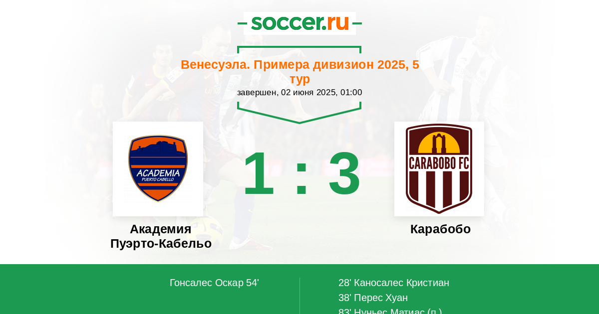 Протокол матча Пуэрто-Кабельо против Карабобо