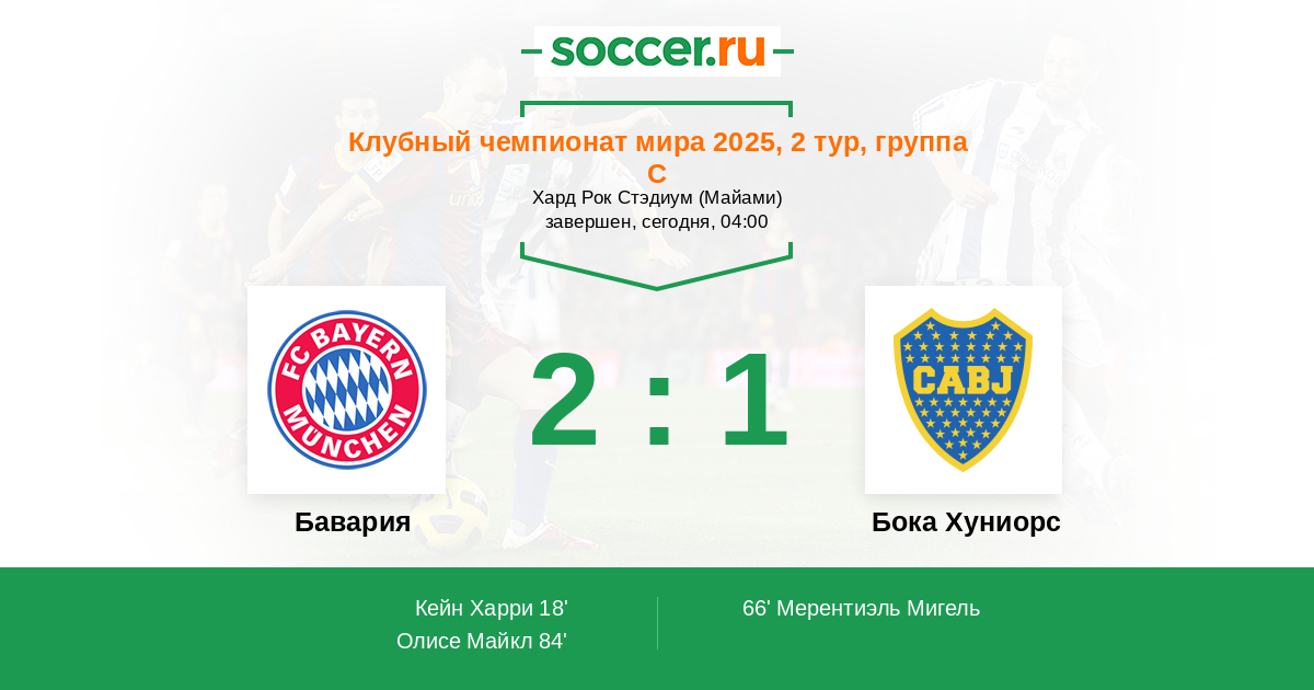 Я думаю что в этом противостоянии более чем явным фаворитом на победу является команда Баварии ,как на мой субъективный взгляд и победителем клубного чемпионата мира . Но и Бока Хуниорс точно не будет мальчиками для битья и свой гол должны будут забивать . Победа Баварии и ТБ 2.50 .