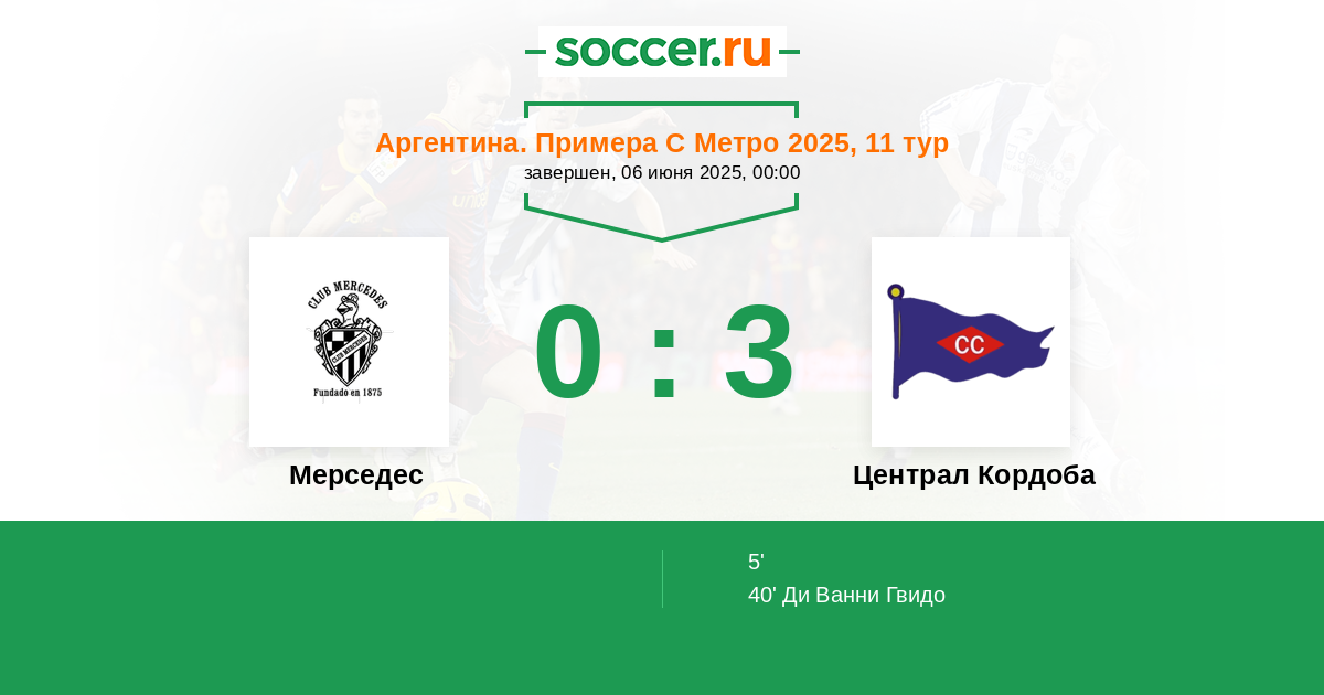 Протокол матча Мерседес против Централ Кордоба