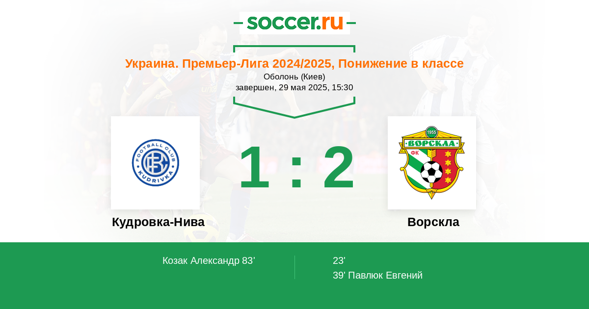 Протокол матча Кудровка-Нива против Ворскла