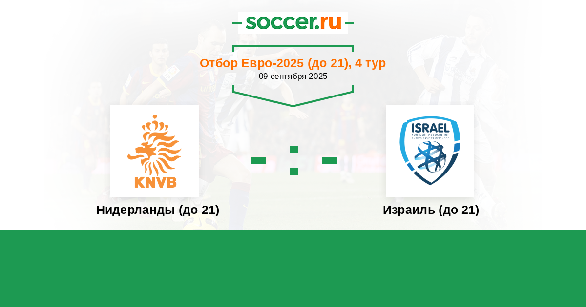 Протокол матча Нидерланды (до 21) против Израиль (до 21)