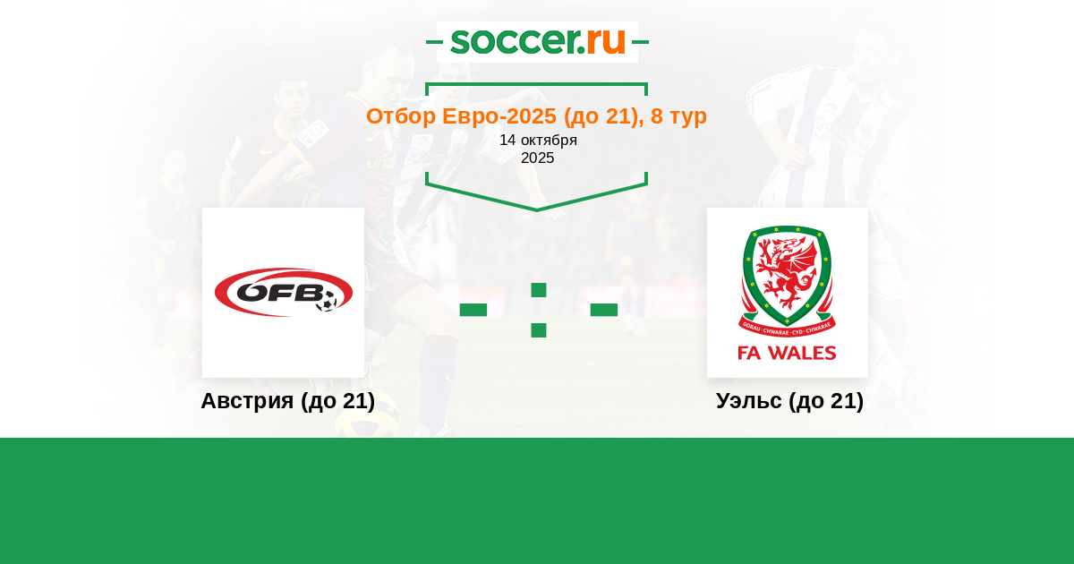 Протокол матча Австрия (до 21) против Уэльс (до 21)