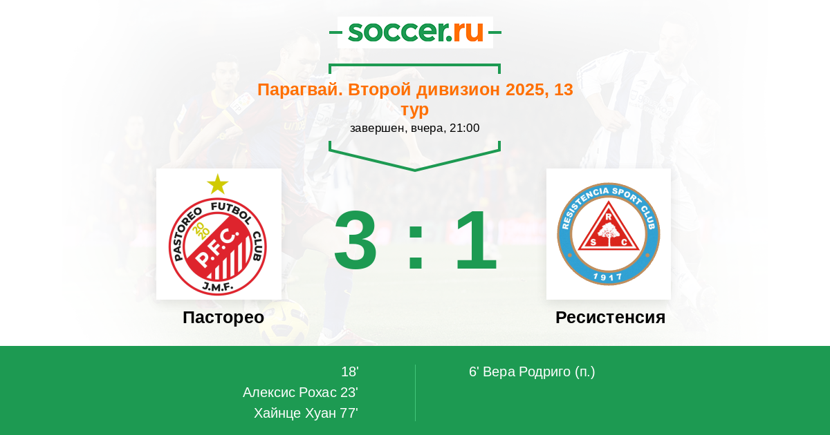 Протокол матча Пасторео против Ресистенсия