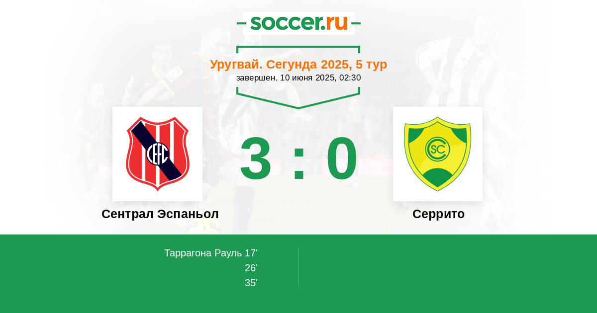 Протокол матча Сентрал Эспаньол против Серрито