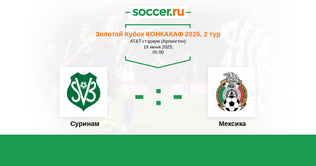 Суринам - Мексика ! Гостям , что бы снять все вопросы необходимо обыграть своих сегодняшних соперников б предположу , что и не без труда , но они добьются нужного результата .
