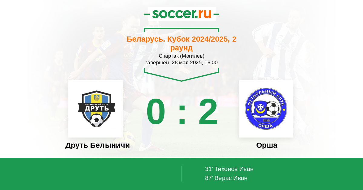 Протокол матча Друть Белыничи против Орша