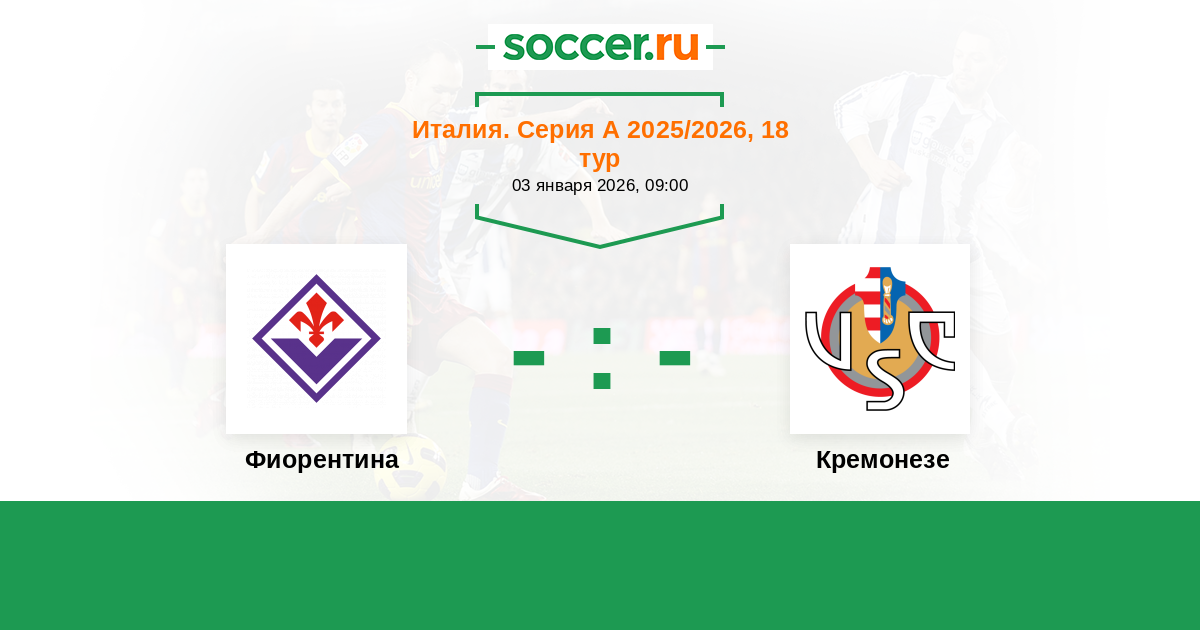 А ведь ещё в прошлом сезоне Фиорентина на что-то претендовала. Прямо сейчас Фиалки находятся на последнем, двадцатом месте в турнирной таблице Серии А.. Кременозе прыгнули выше головы, продолжая выглядеть очень уверенно. Победа гостей или ничья.