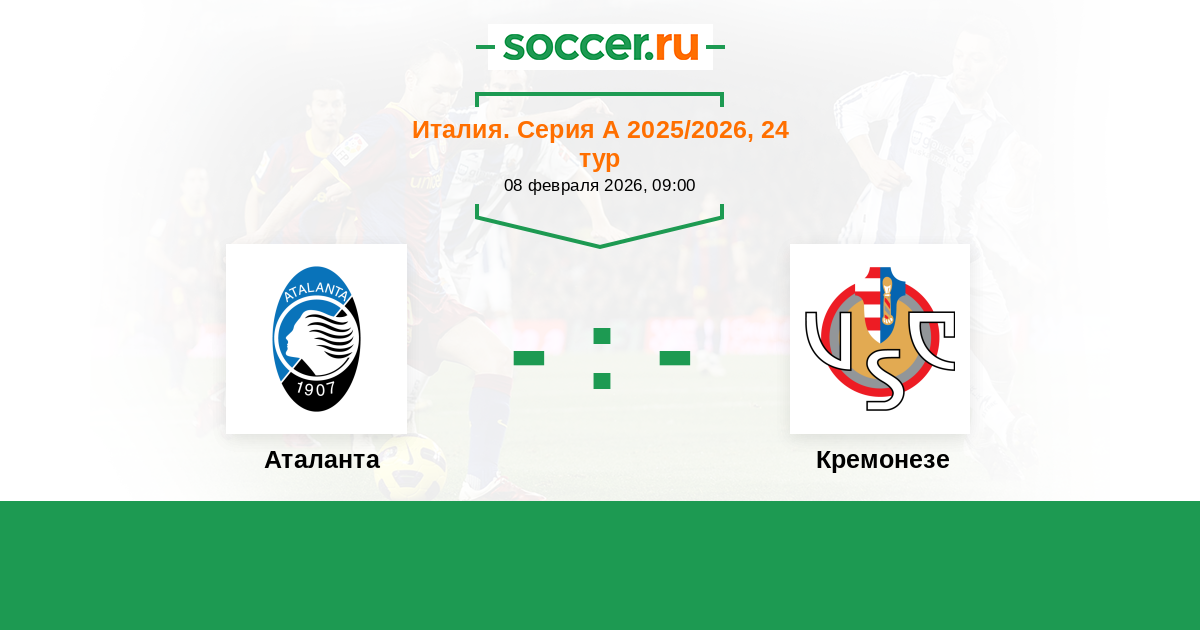 25' (2:0) Дзаппакоста Давиде (77) (Пашалич Марио (8))
