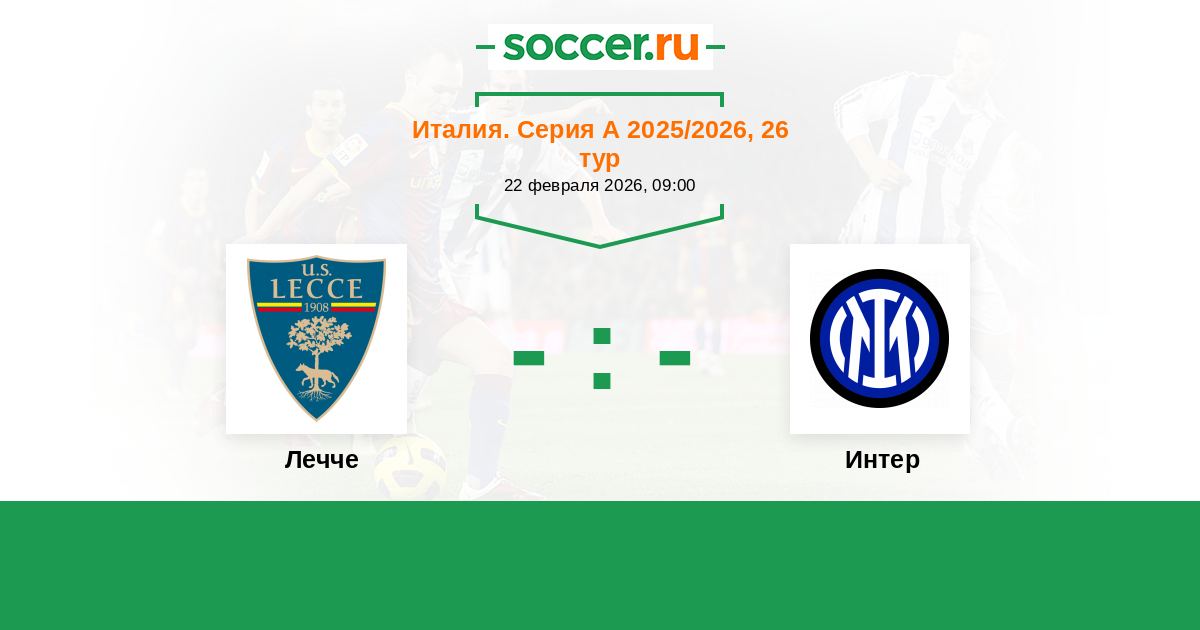Италия. Серия А 25.02.2024 Лечче Логотип футбольный клуб Лечче 0:4 Логотип футбольный клуб Интер (Милан) Интер
