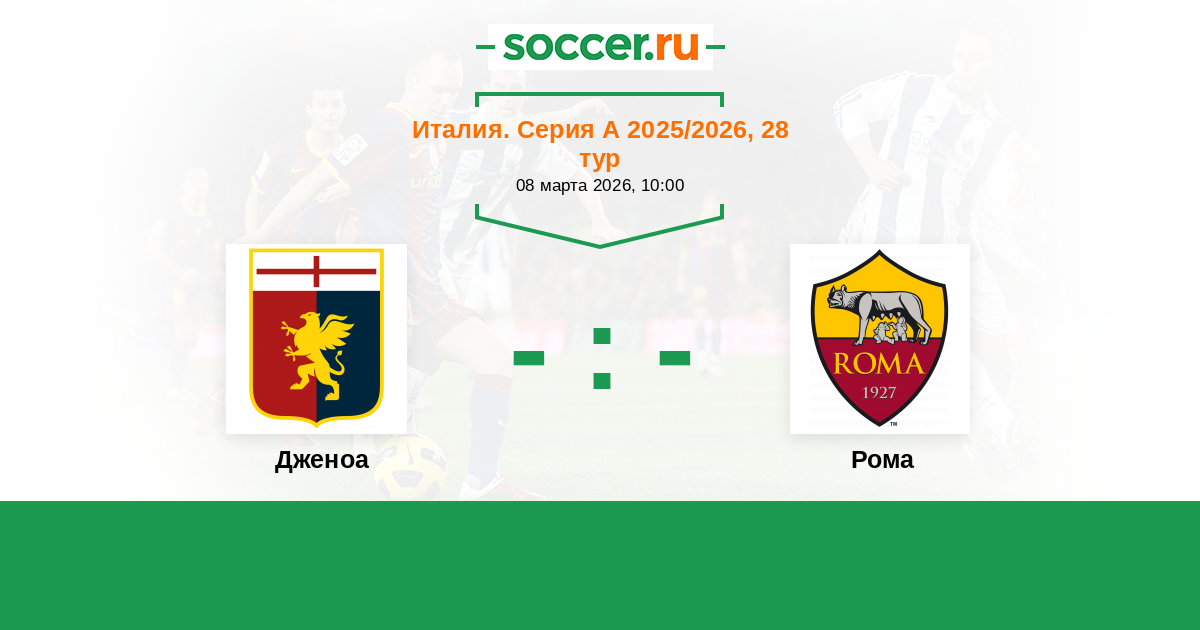 Италия. Серия А 29.12.2025 Рома Логотип футбольный клуб Рома (Рим) 3:1 Логотип футбольный клуб Дженоа (Генуя) Дженоа