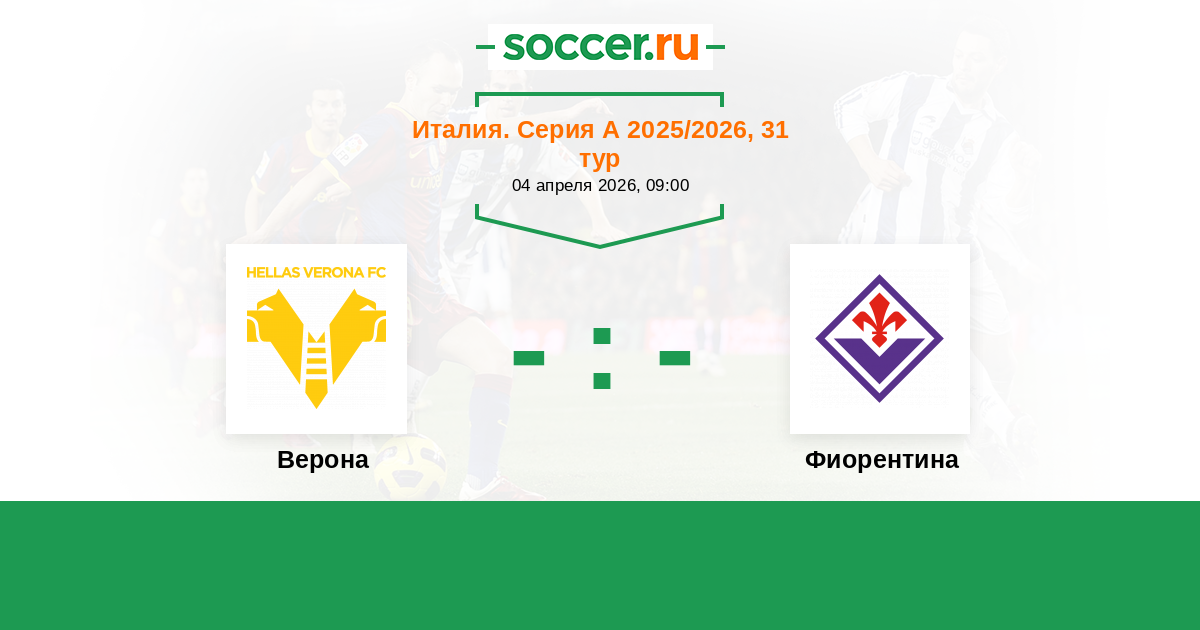 Италия. Серия А 23.02.2025 Верона Логотип футбольный клуб Верона 1:0 Логотип футбольный клуб Фиорентина (Флоренция) Фиорентина