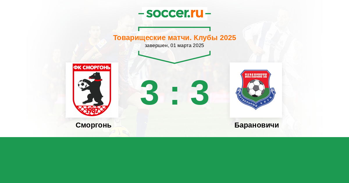Беларусь. Первая лига 07.04.2018 Сморгонь Логотип футбольный клуб Сморгонь 1:0 Логотип футбольный клуб Барановичи Барановичи