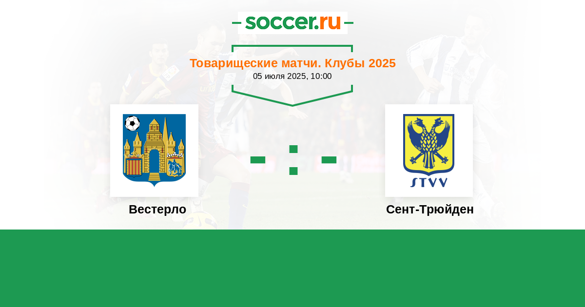 Товарищеские матчи. Клубы 10.07.2021 Сент-Трюйден Логотип футбольный клуб Сент-Трюйден (Синт-Трёйден) 2:1 Логотип футбольный клуб Вестерло Вестерло