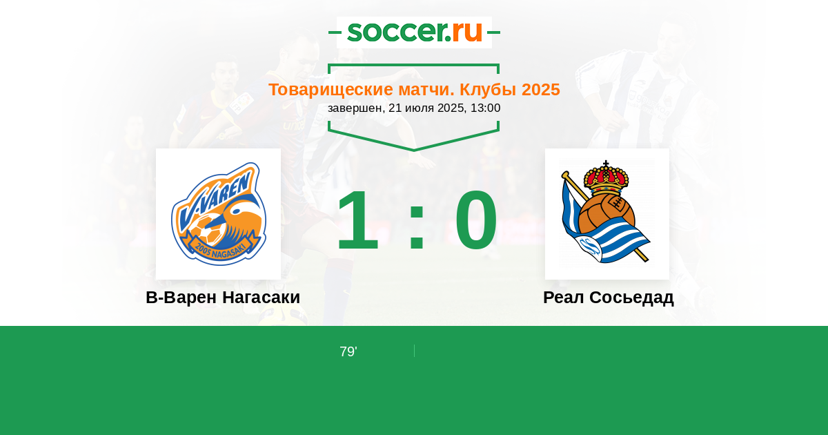 Протокол матча В-Варен Нагасаки против Реал Сосьедад