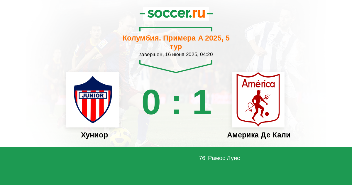 Протокол матча Хуниор против Америка Де Кали