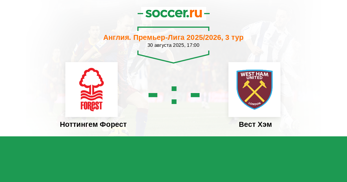 Протокол матча Ноттингем Форест против Вест Хэм