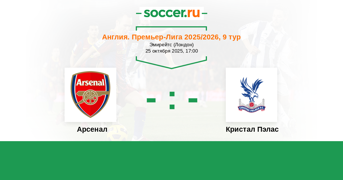 В предстоящем матче 9 - го тура английской Премьер-Лиги между командами Арсенал Лондон и Кристал Пэлас , моим фаворитом на победу является команда хозяев Арсенал , так как они играют лучше