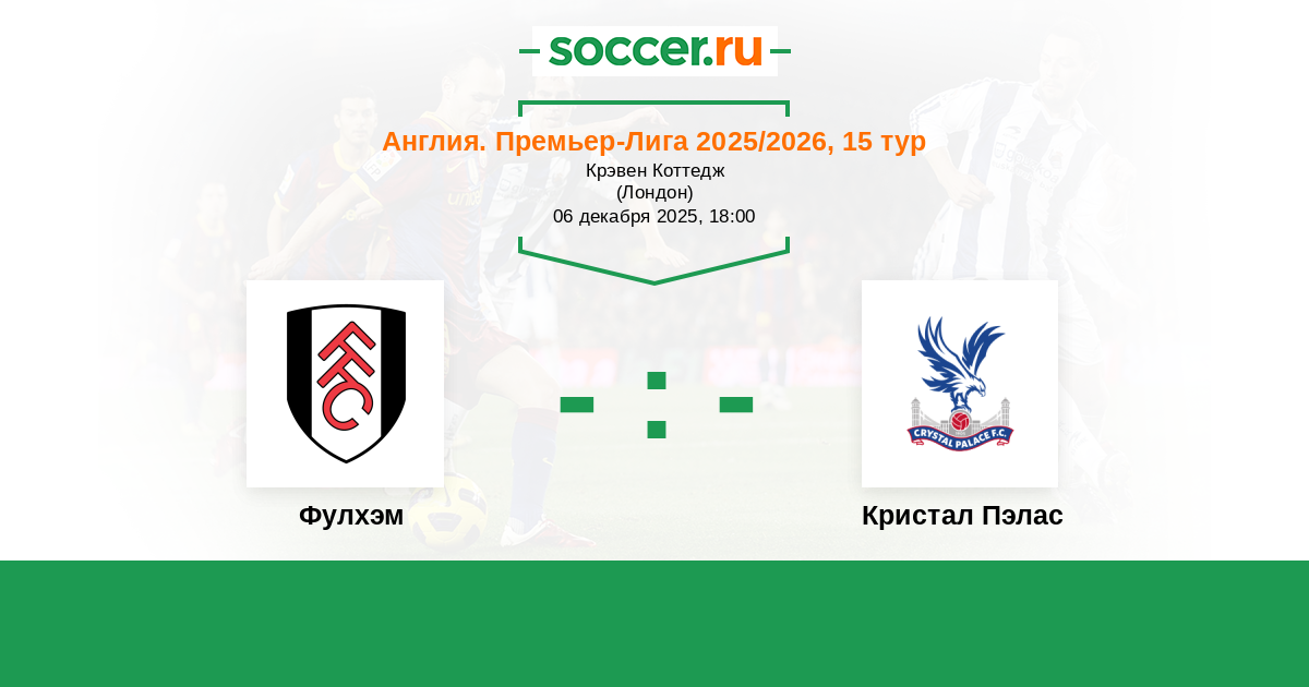 Кристал Пэлас действующий обладатель Кубка Англии по футболу и занимает текущее пятое место в турнирной таблице АПЛ, ещё клуб принимает участие в борьбе за Кубок Лиги конференций. Тяжело на нескольких фронтах, видимо будет ротация.. Победа хозяев.
