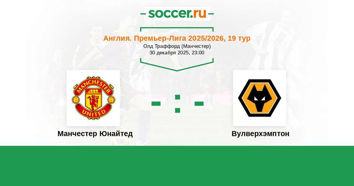 Протокол матча Манчестер Юнайтед против Вулверхэмптон
