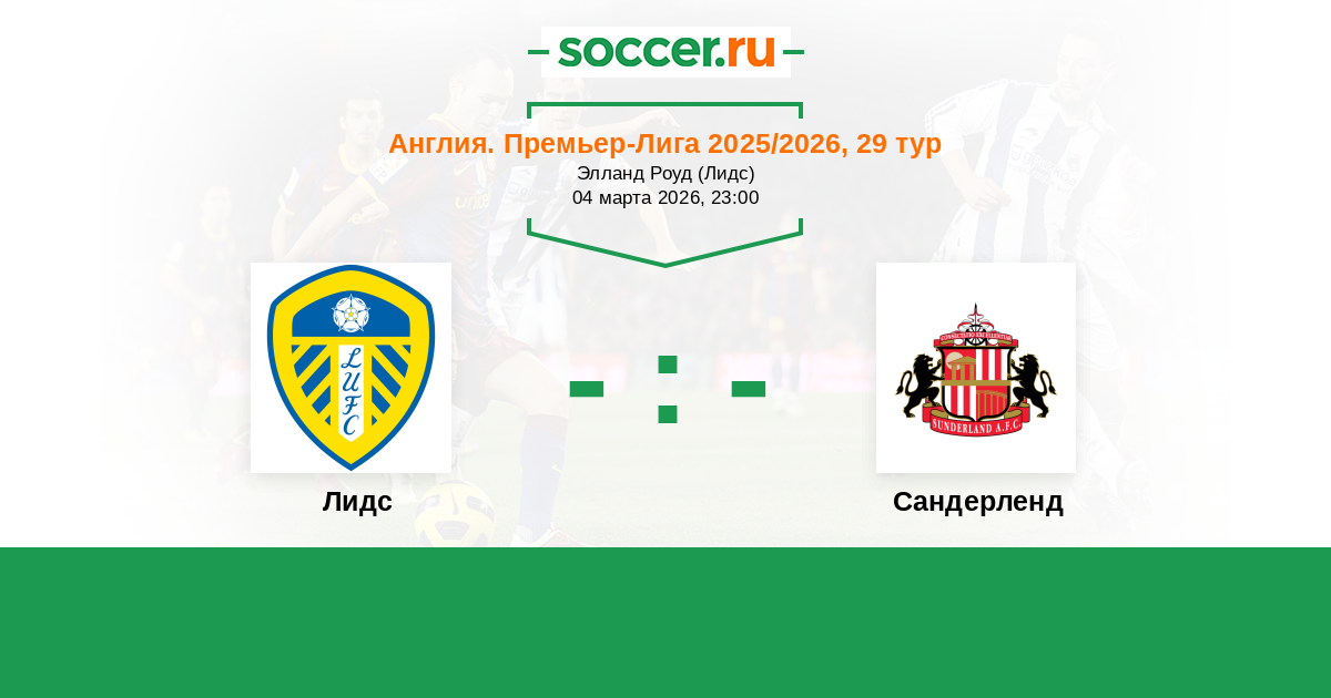 Англия. Премьер-Лига 28.12.2025 Сандерленд Логотип футбольный клуб Сандерленд 1:1 Логотип футбольный клуб Лидс Лидс