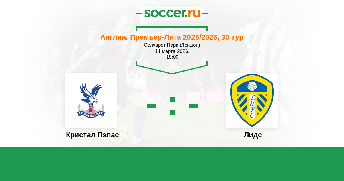 Англия. Премьер-Лига 20.12.2025 Лидс Логотип футбольный клуб Лидс 4:1 Логотип футбольный клуб Кристал Пэлас (Лондон) Кристал Пэлас