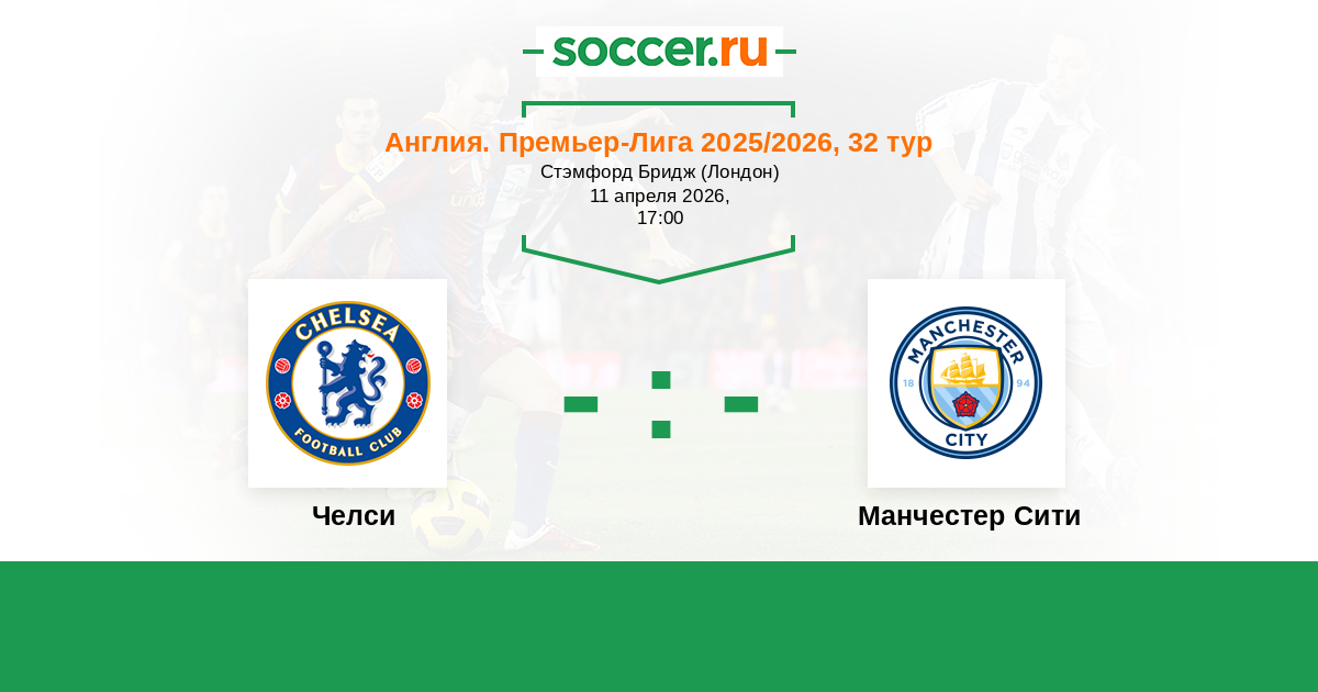 Англия. Премьер-Лига 04.01.2026 Манчестер Сити Логотип футбольный клуб Манчестер Сити 1:1 Логотип футбольный клуб Челси (Лондон) Челси