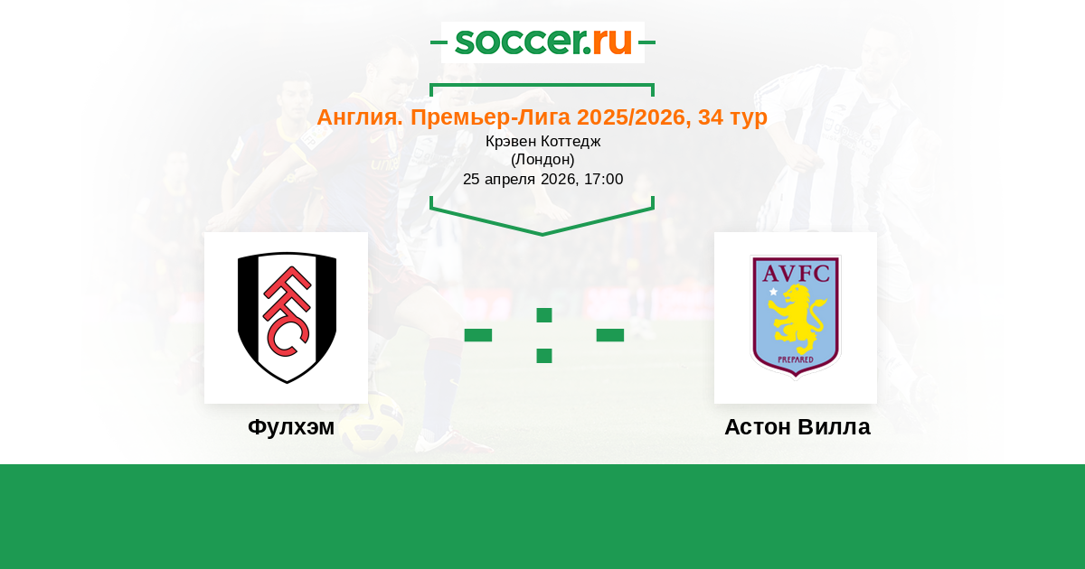 Англия. Премьер-Лига 17.02.2024 Фулхэм Логотип футбольный клуб Фулхэм (Лондон) 1:2 Логотип футбольный клуб Астон Вилла (Бирмингем) Астон Вилла