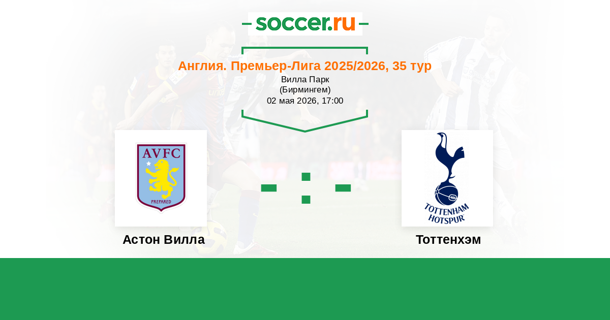 Англия. Премьер-Лига 19.10.2025 Тоттенхэм Логотип футбольный клуб Тоттенхэм (Лондон) 1:2 Логотип футбольный клуб Астон Вилла (Бирмингем) Астон Вилла