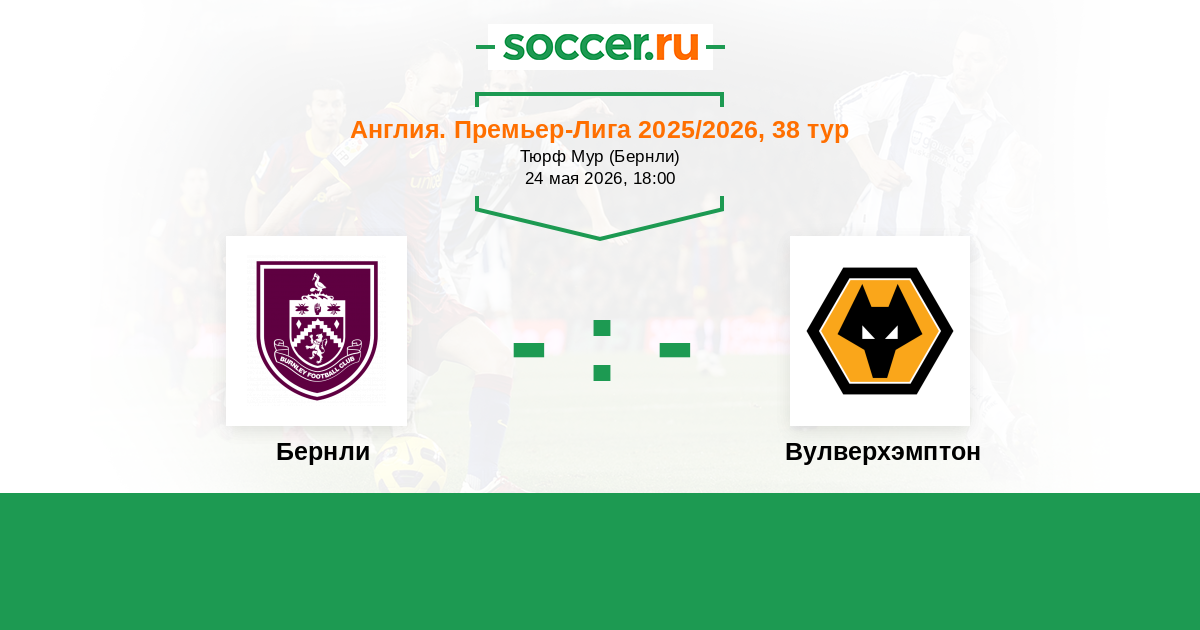 Англия. Премьер-Лига 25.04.2021 Вулверхэмптон Логотип футбольный клуб Вулверхэмптон 0:4 Логотип футбольный клуб Бернли Бернли