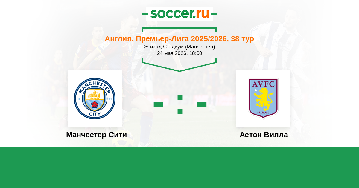Англия. Премьер-Лига 22.04.2025 Манчестер Сити Логотип футбольный клуб Манчестер Сити 2:1 Логотип футбольный клуб Астон Вилла (Бирмингем) Астон Вилла