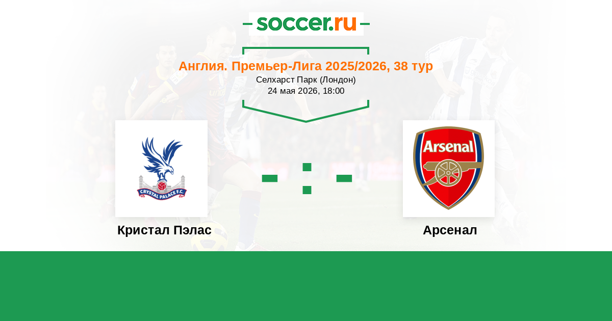Англия. Премьер-Лига 23.04.2025 Арсенал Логотип футбольный клуб Арсенал (Лондон) 2:2 Логотип футбольный клуб Кристал Пэлас (Лондон) Кристал Пэлас