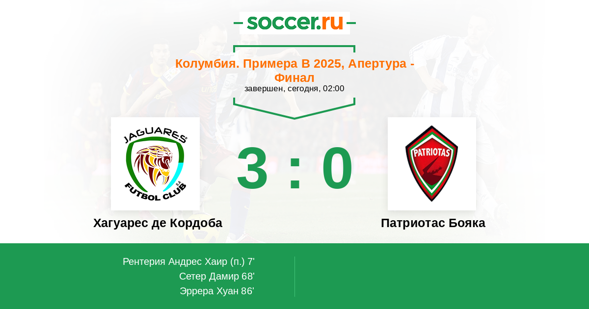 Протокол матча Хагуарес де Кордоба против Патриотас Бояка