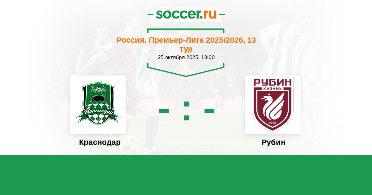 Являясь чемпионом страны, Краснодару, в этом домашнем матче, нельзя даже на мгновение думать о другом результате, кроме победы. В этом сезоне Рубин не отличается стабильностью: победы чередуются с поражениями либо вымученные ничьи. Поэтому ставлю на Краснодар.