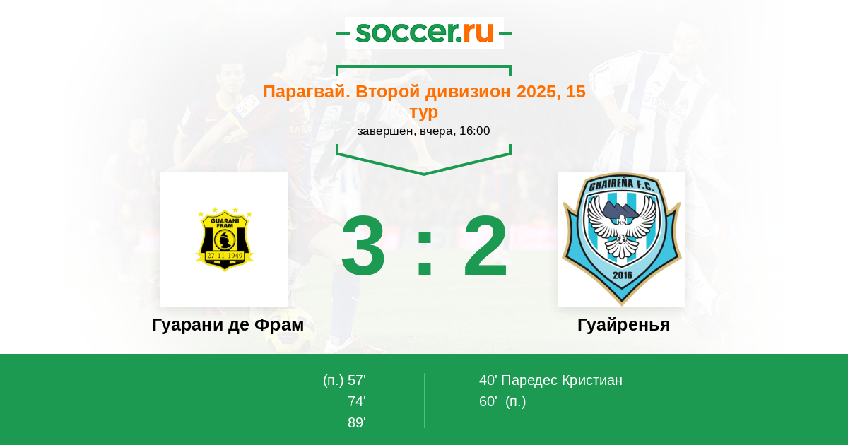 Протокол матча Гуарани де Фрам против Гуайренья