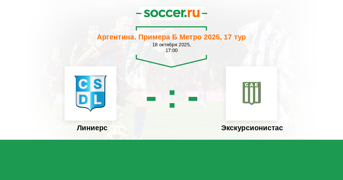 Аргентина. Примера С Метро 28.08.2010 Экскурсионистас Логотип футбольный клуб Экскурсионистас (Буэнос-Айрес) 1:1 Логотип футбольный клуб Линиерс (Ла-Матанса) Линиерс