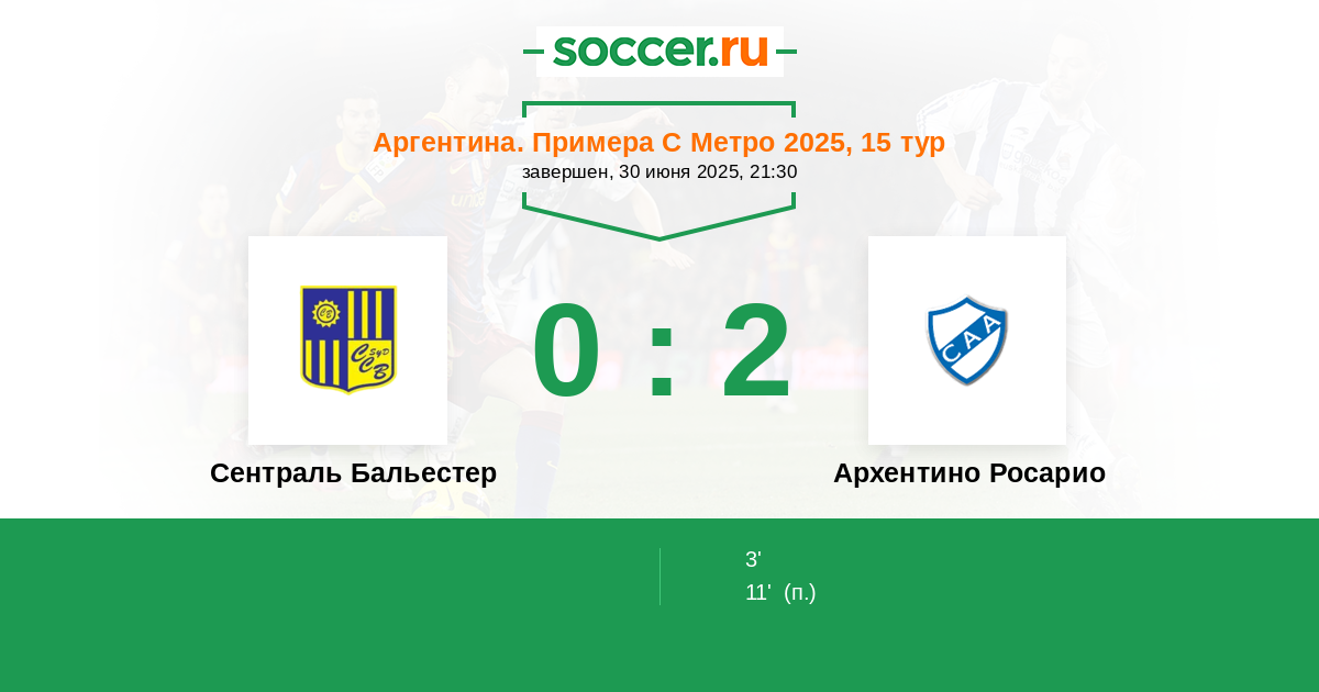 Протокол матча Сентраль Бальестер против Архентино Росарио
