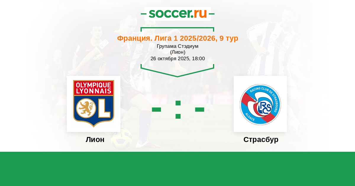 Лион - Страсбур ! Встречаются соседи по тур . таблицы у которых не плохие перспективы за счёт этого матча хорошо поправить своё положение . Очные встречи проходят на редкость результативно .