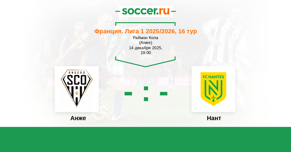 Франция. Лига 1 07.08.2022 Анже Логотип футбольный клуб Анже 0:0 Логотип футбольный клуб Нант Нант