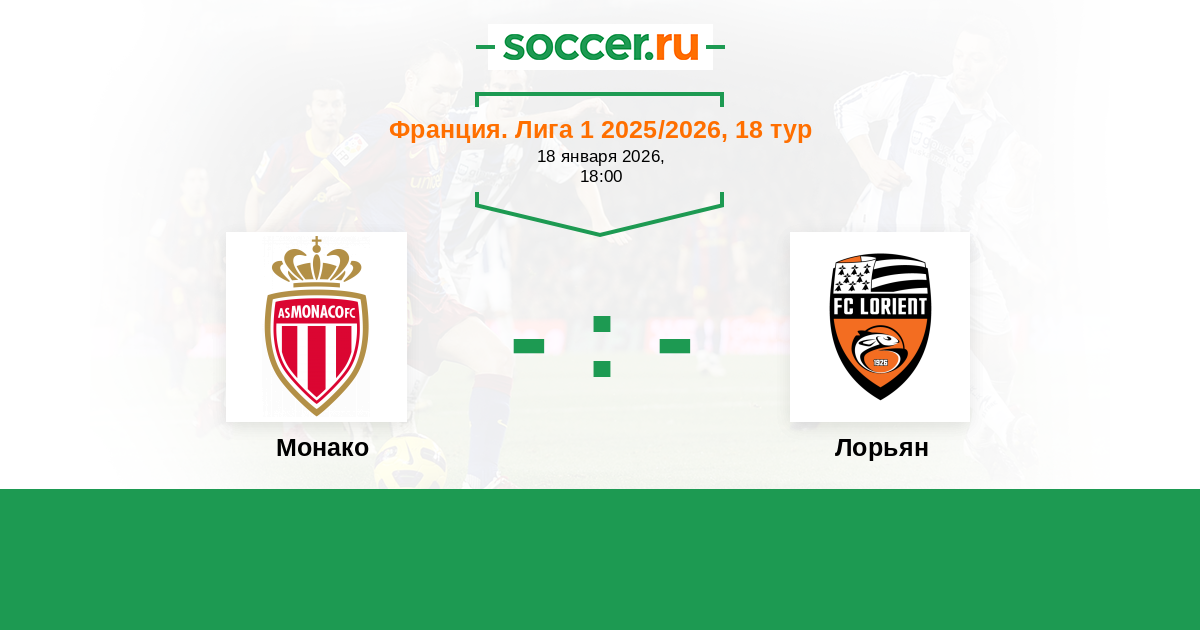 Франция. Лига 1 22.01.2017 Монако Логотип футбольный клуб Монако 4:0 Логотип футбольный клуб Лорьян Лорьян