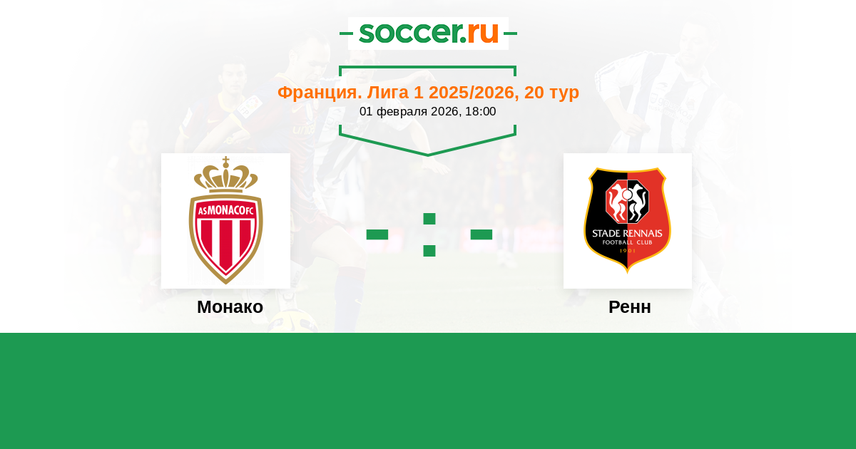 Франция. Лига 1 25.01.2025 Монако Логотип футбольный клуб Монако 3:2 Логотип футбольный клуб Ренн Ренн