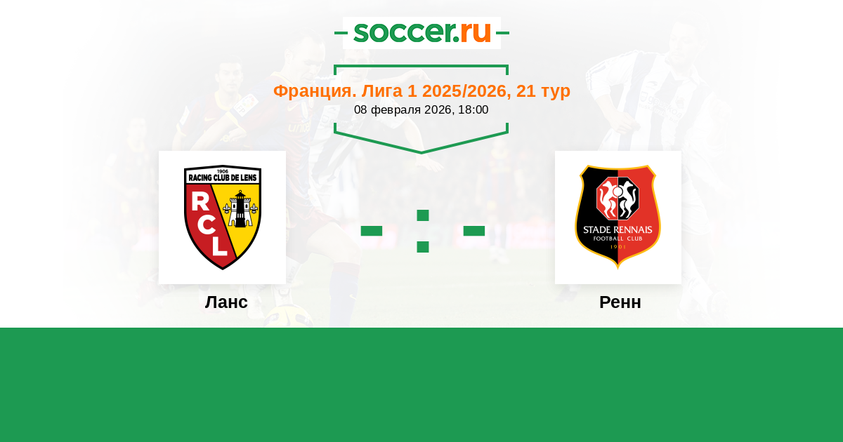 Франция. Лига 1 06.02.2021 Ланс Логотип футбольный клуб Ланс 0:0 Логотип футбольный клуб Ренн Ренн