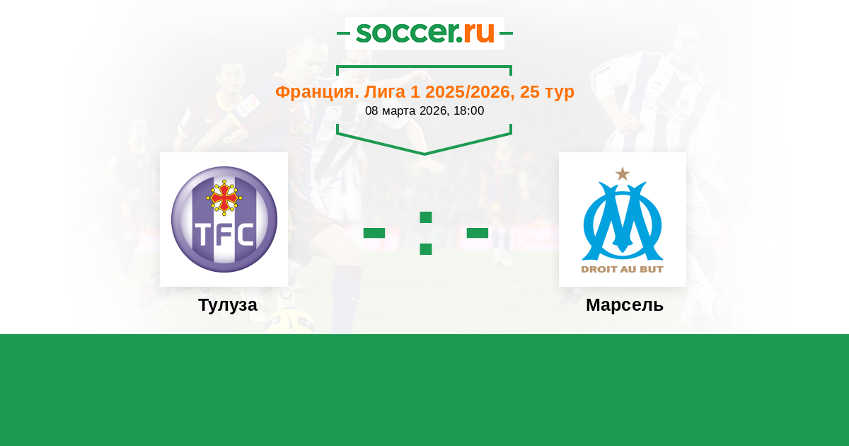 Франция. Лига 1 11.03.2018 Тулуза Логотип футбольный клуб Тулуза 1:2 Логотип футбольный клуб Марсель Марсель