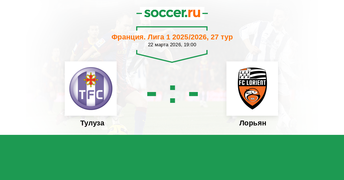 Франция. Лига 1 09.11.2025 Лорьян Логотип футбольный клуб Лорьян 1:1 Логотип футбольный клуб Тулуза Тулуза